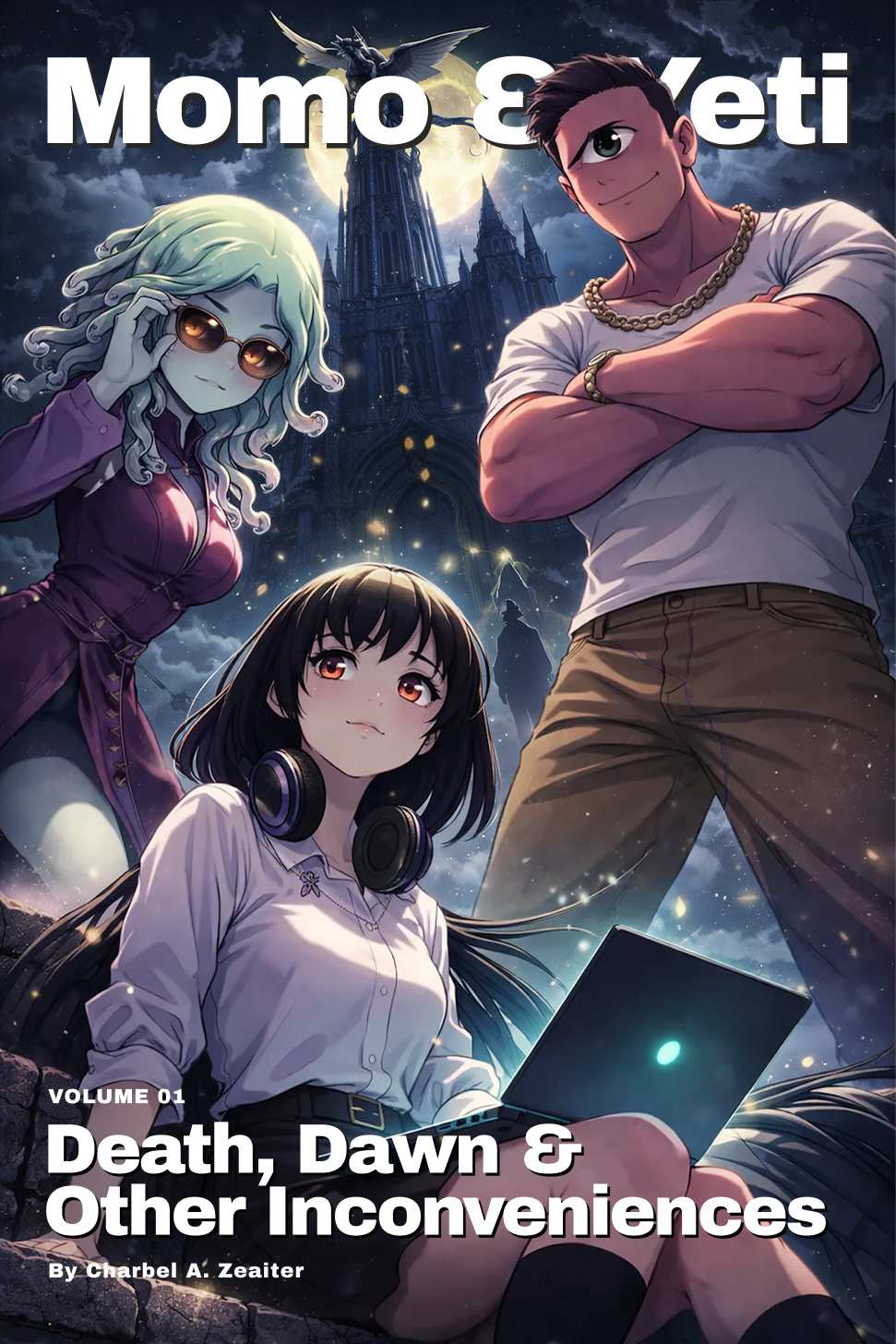 Venus is a vampire, a hacker, and freshly grieving her brother. She has his research, his enemies, and absolutely no plan. Eva is a Medusa with a fashion empire, a head full of snakes with opinions, and a university orientation she might not survive. Bolt is a Cyclops who meditates, breaks walls he doesn’t mean to, and carries more anger than any mantra can hold.